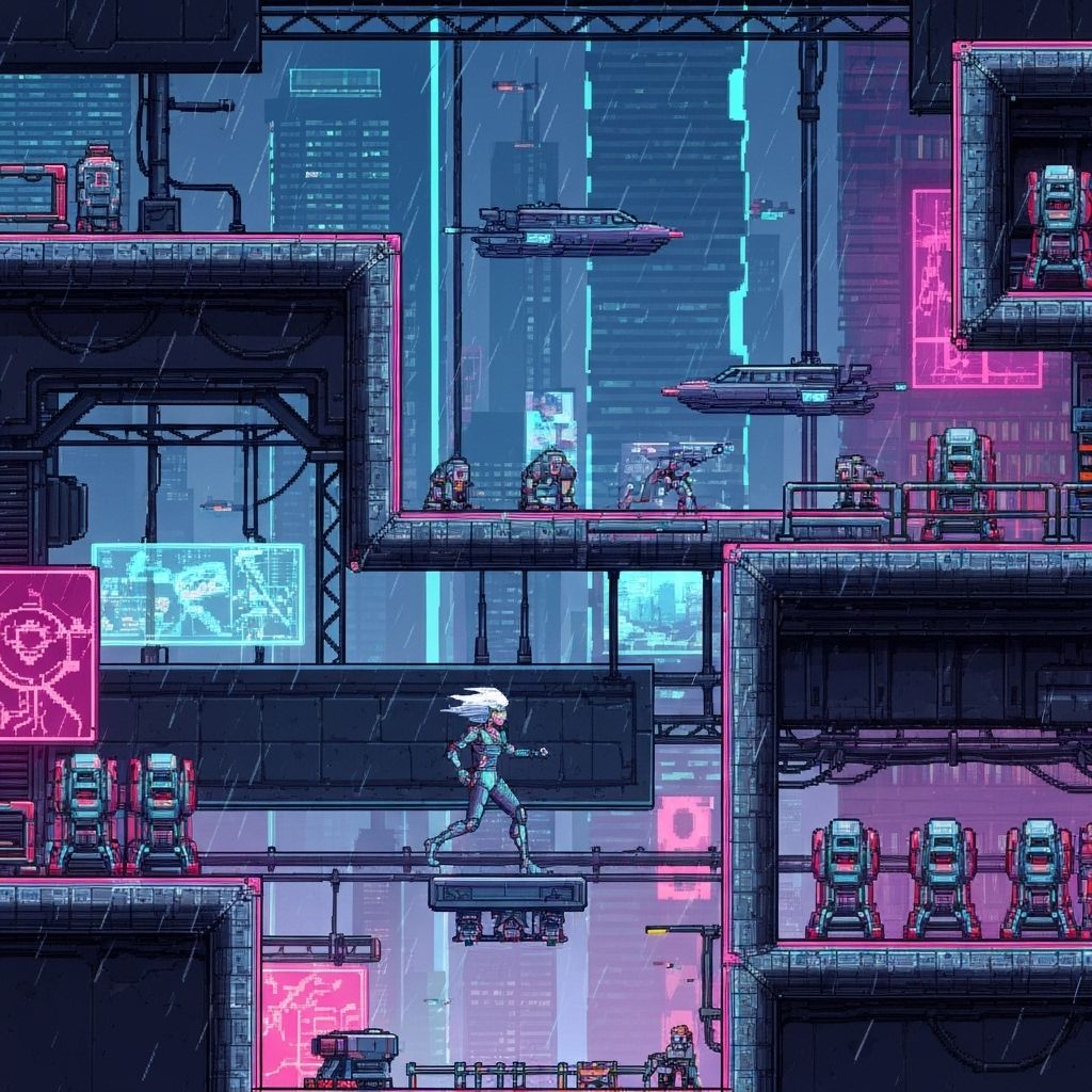 Fast-paced cyberpunk platformer with stunning visuals and challenging gameplay